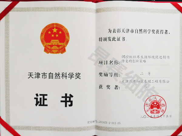 公司合作項(xiàng)目《調(diào)控組織再生微環(huán)境促進(jìn)損傷修復(fù)的創(chuàng)新策略》獲得天津市自然科學(xué)二等獎(jiǎng)。