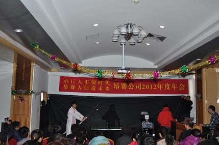 ??????? 在韓忠朝總經(jīng)理致辭之后,由公司工會精心組織的新春聯(lián)歡會隆重登場,舞蹈、歌曲、黑光劇、小品、啞劇輪番登場,所有的節(jié)目都是員工自編自演,再次展示了昂賽員工的多才多藝。節(jié)目異彩紛呈:其中財務(wù)部編排的舞蹈《鳥叔鳥妹》、多部門聯(lián)合排演的黑光劇《乒乓超人》、以及兩段不同風(fēng)格的小品表演《蓋章》《超幸福》,引來掌聲連連,現(xiàn)場一片歡樂的海洋,而客服部的舞蹈《荷塘月色》、綜合部的歌曲《你是我的眼》更是體現(xiàn)了很高的藝術(shù)水平。伴隨著年會的進(jìn)行每個員工臉上充滿興奮的喜悅和激動的表情,在聯(lián)歡會的最后公司領(lǐng)導(dǎo)和老同志共同合唱了一曲《我和我的祖國》將氣氛推向了頂峰。